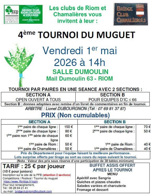 salle Dumoulin - mail Dumoulin 63200 RIOM - de 14h à 20h